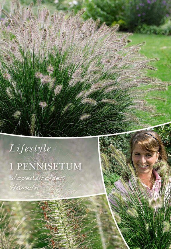 Austraalia hiidhirss ‘Hameln’ on kompaktne dekoratiivne kõrreline. Õisikud valged, veidi pudeliharja meenutava välimusega. Sobib päikeselisse ja kuiva kasvukohta, saab hakkama ka parasniiskes. Peenrasse või konteinerisse, grupina või ääristaimena istutamiseks. Õisikud sobivad kuivatamiseks. Sügisel lehed kollased, talvel dekoratiivne. Vältida talvist liigniiskust, lumeta talvel soovituslik katta.