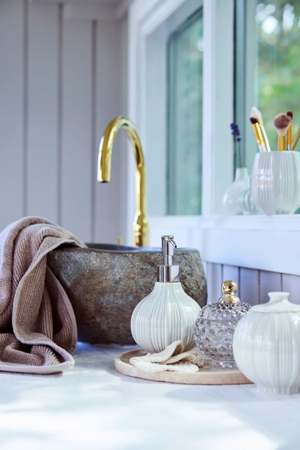 Kaanega hoiupurk Lily on keraamiline elegantne ja stiilne aksessuaar. Peen triibuline muster lisab vannitoale eksklusiivse ilme, muutes selle nii praktiliseks kui ka kauniks sisustuselemendiks, mis täiustab igat ruumi.