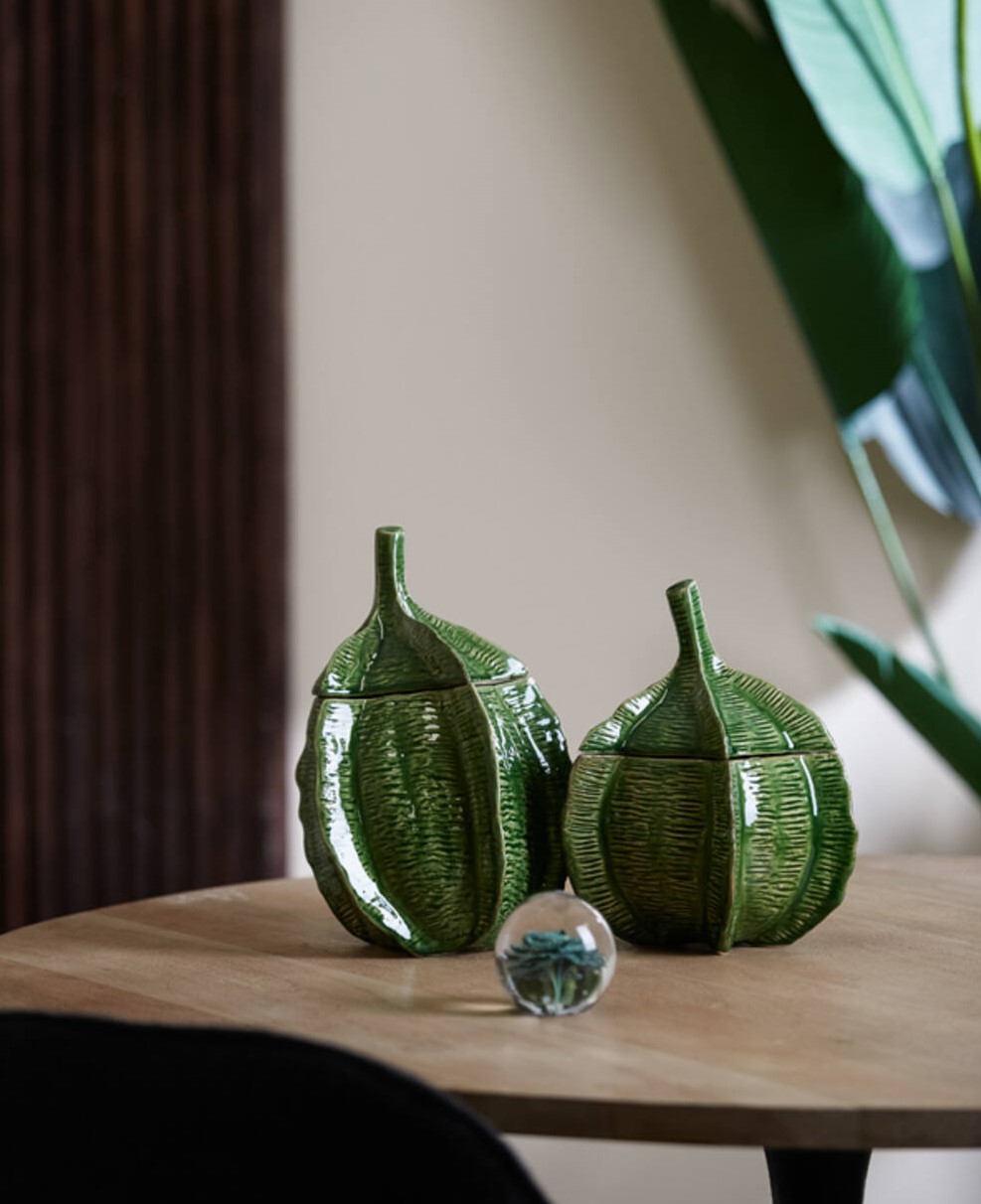 Dekoratiivne Sabara hoiupurk on stiilne ja silmapaistev lisand igasse interjööri. 100% keraamikast valmistatud purk on vastupidav ja kvaliteetne. Roheline värv toob ruumi värskuse ja elu, olles samal ajal praktiline hoiukoht väikeste esemete jaoks.