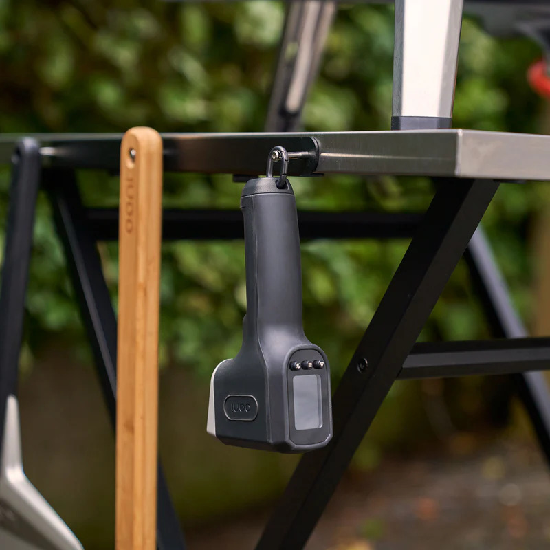 Infrapuna termomeeter Ooni on täpne ja mugav tööriist pitsaahju temperatuuri mõõtmiseks ilma pinnaga kokku puutumata. Laseriga juhitav mõõtmine võimaldab kiiresti kontrollida pitsakivi kuumust, et saavutada iga kord ideaalne küpsetustulemus. Seade annab tulemuse vähem kui sekundiga ning aitab täpselt määrata, millal ahi on küpsetamiseks valmis.