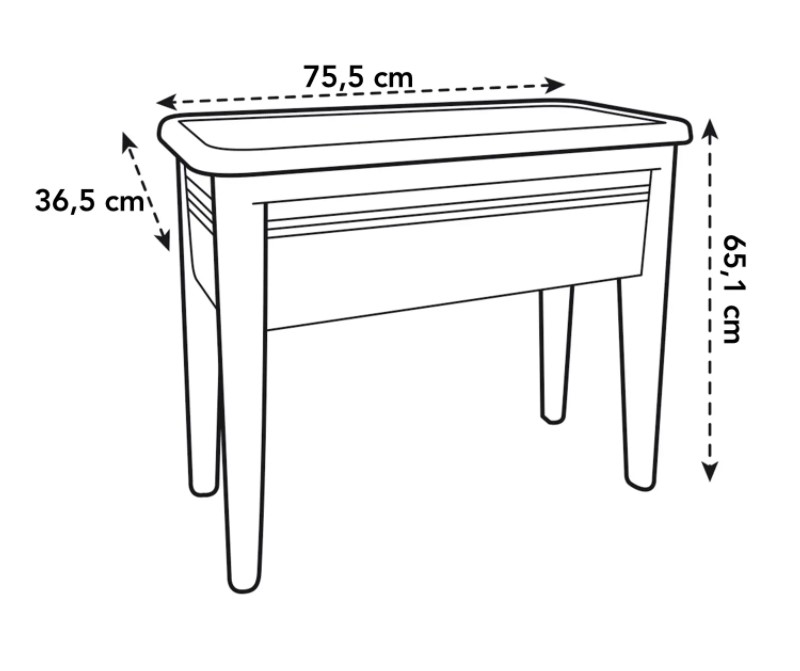 • Mõõdud: 75 × 37 cm, kõrgus 65 cm.