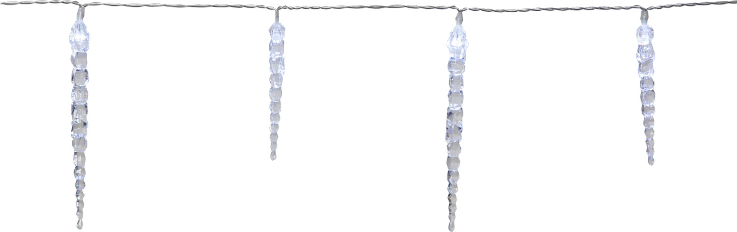 Dekoratiivne jääpurikakujuline valguskett kahes eri pikkuses purikatega (11 cm ja 16 cm). Kett on varustatud 8 valgusrežiimi ja taimeriga, mida saab juhtida adapteril asuva nupu kaudu. Läbipaistev kaabel ja külm valge valgus loovad selge ja talvise ilme, sobides hästi räästa alla, terrassile või veranda kaunistamiseks.