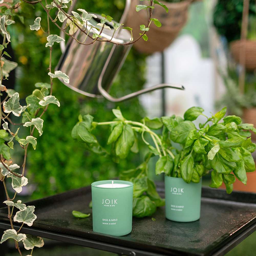 Joik Home & Spa lõhnaküünal Basiilik ja münt on külluslik lõhnabukett, mis lennutab otsejoones suvisesse kasvuhoonesse. Päikesepaistel kasvanud virgutav münt hõljub aromaatse ja vürtsika basiiliku embuses, millele estragon ja salvei lisavad nüansirikast ürdist nooti.