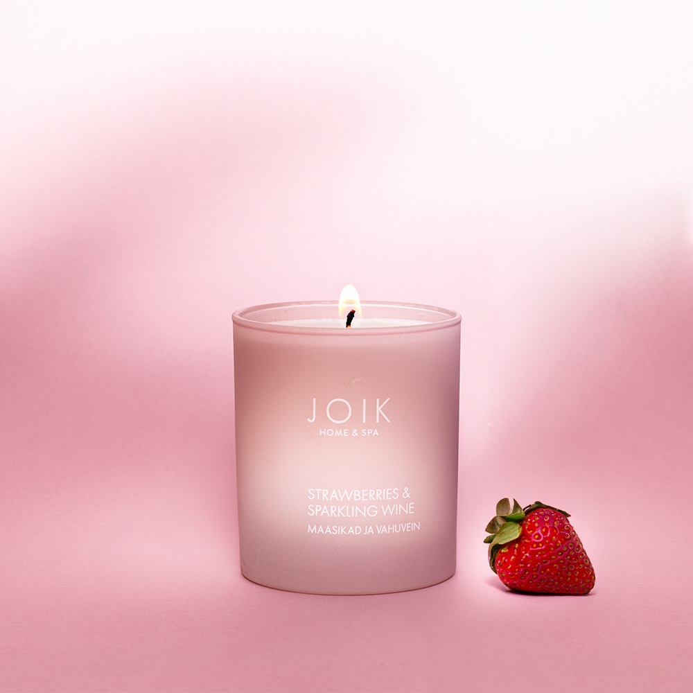 “Maasikad & Vahuvein” on romantilise ja luksusliku iseloomuga lõhnaküünal, mille aroomikompositsioonis kohtuvad konjaki ja värske õuna särtsakus, sametine roos ning puuviljased viinamarja- ja lillelõhnad. Alusnootides avalduvad magus mesi, küpsed maasikad ja vaarikad, mida ühendab pehme muskuse puudrine lõpp.
