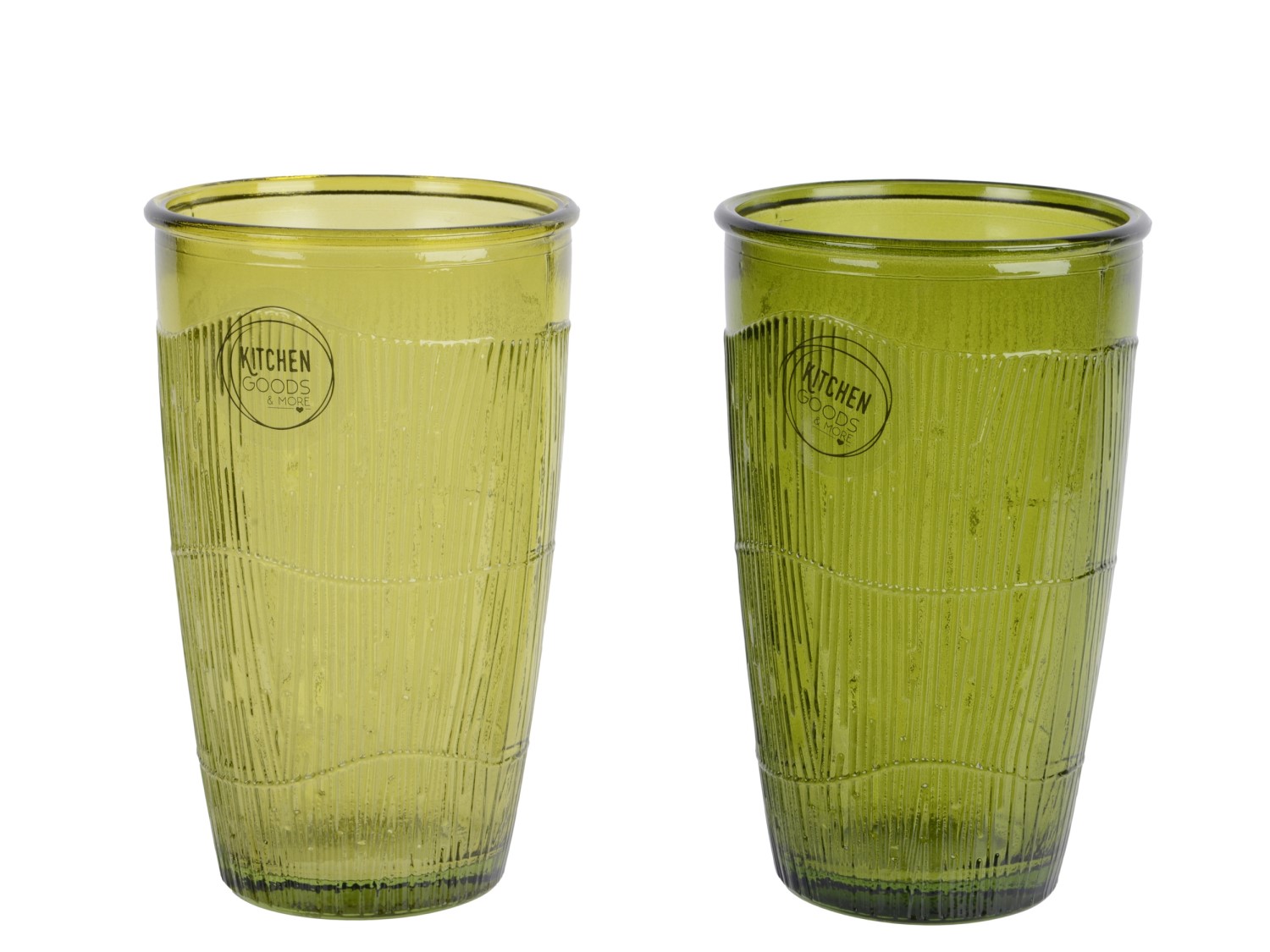 Taaskasutatud klaasist valmistatud joogiklaas, mille reljeefne pind ja kergelt ebaühtlane toon annavad sellele loomuliku ja veidi rustikaalse ilme. Iga klaas on veidi erineva varjundiga, mis muudab komplekti mitmekesisemaks ja elavamaks.