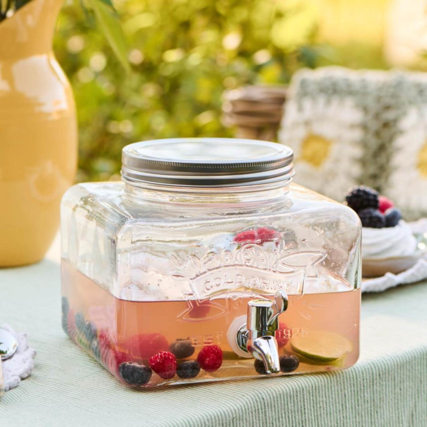 Klaasist kraaniga jooginõu on stiilne ja praktiline lisand sünnipäevapidudele, aiapidudele ja pereõhtutele. Lai ja stabiilne disain võimaldab hõlpsalt serveerida limonaadi, mahla või vett. Suur hõbedane metallkaas muudab täitmise mugavaks, samas kui väike kraan tagab lihtsa ja puhta valamise otse klaasi. Esiküljel on kaunis reljeefmuster, mis lisab dekoratiivset aktsenti igale lauale. Lisa jääkuubikuid, sidruniviile või münti ning naudi värskendavat jooki – ideaalne suviseks ajaks!