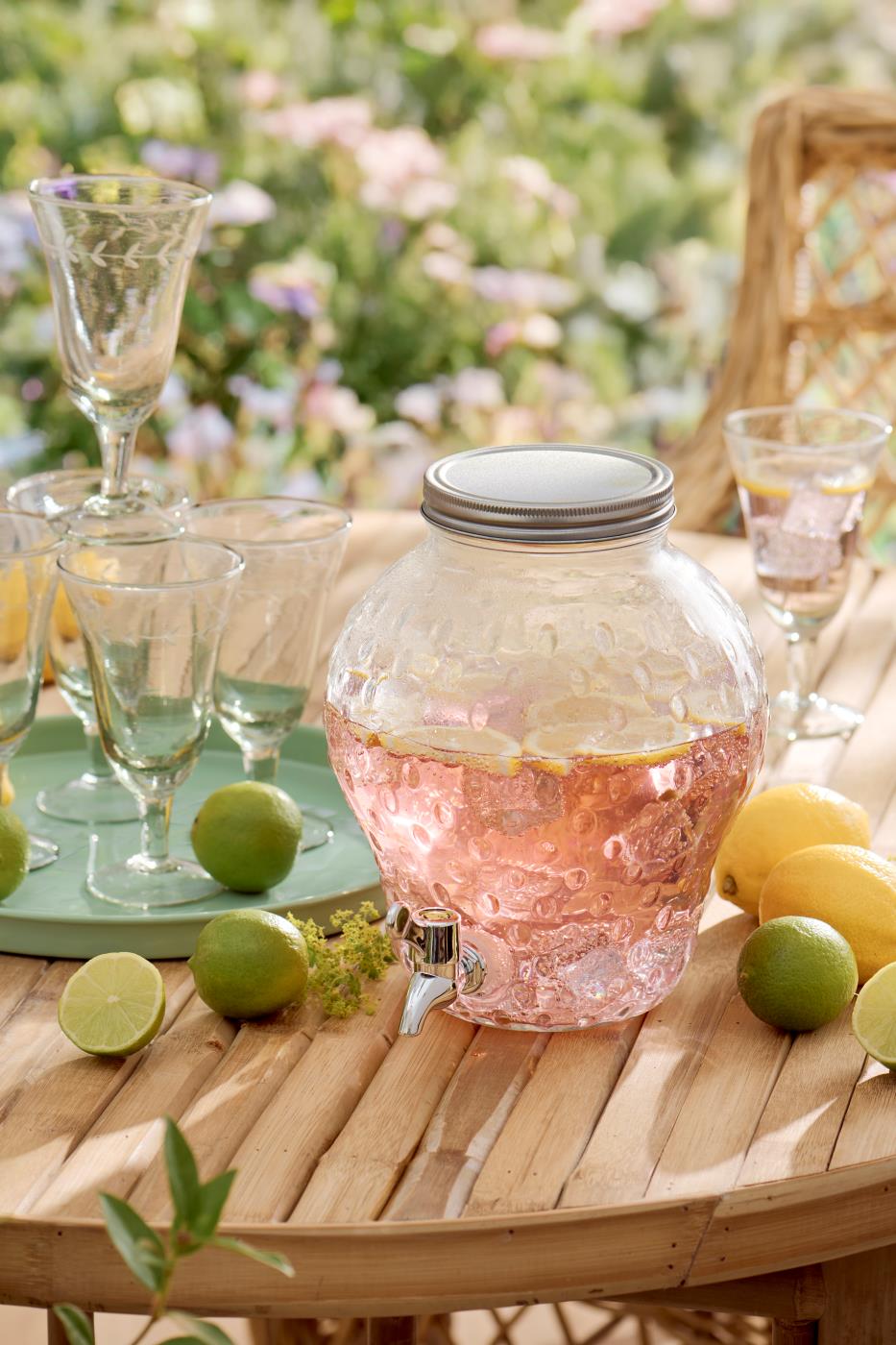 Maasikakujuline kraaniga jookide serveerimisnõu on mängulise disainiga klaasanum, mis sobib suurepäraselt külmade jookide pakkumiseks suvepidudel, sünnipäevadel või terrassil. Mahukas 3,8-liitrine nõu võimaldab valmistada ja serveerida suuremat kogust karastusjooki korraga. Klaaspurk on varustatud praktilise kraaniga, mis muudab jookide väljavalamise mugavaks ja kontrollituks.