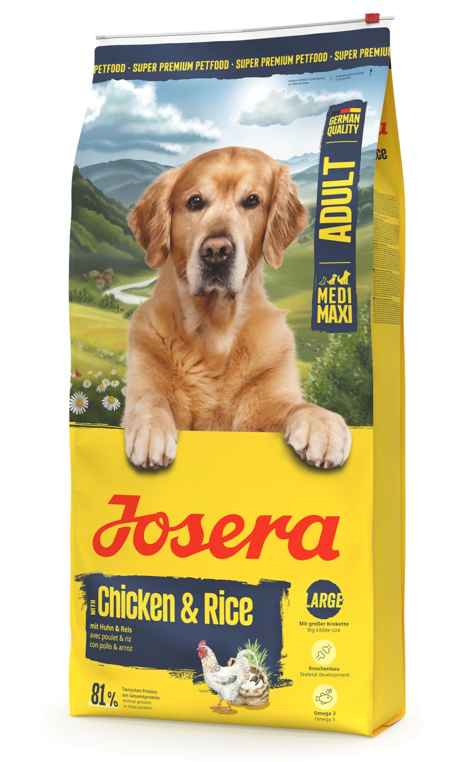 Josera kanaliha ja riisiga kuivtoit on täisväärtuslik täissööt täiskasvanud keskmist ja suurt tõugu koertele, paistes silma eriti suurte graanulitega. Suurem graanulisuurus soodustab põhjalikumat närimist ning aitab vältida toidu liiga kiiret neelamist. Kõrgem kiudainesisaldus tekitab pikemaajalise täiskõhutunde ja aitab seeläbi kontrollida koera isu. Tasakaalustatud kaltsiumi ja fosfori suhe koos C-vitamiini, mangaani ja vasega toetab tugevat luustikku ning terveid liigeseid. Lõheõlist pärinevad oomega-3 rasvhapped tugevdavad immuunsüsteemi ning toetavad naha ja südame tervist.