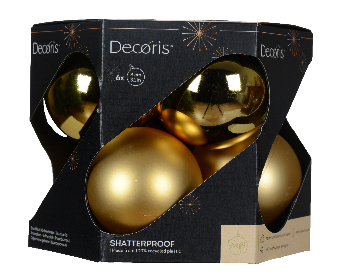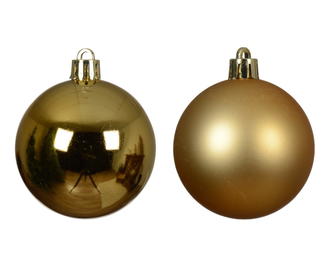 Läbimõõt: 8cm Pakis on 6 kuuli (3x matt ja 3x läikiv) Värvus: h.kuldne