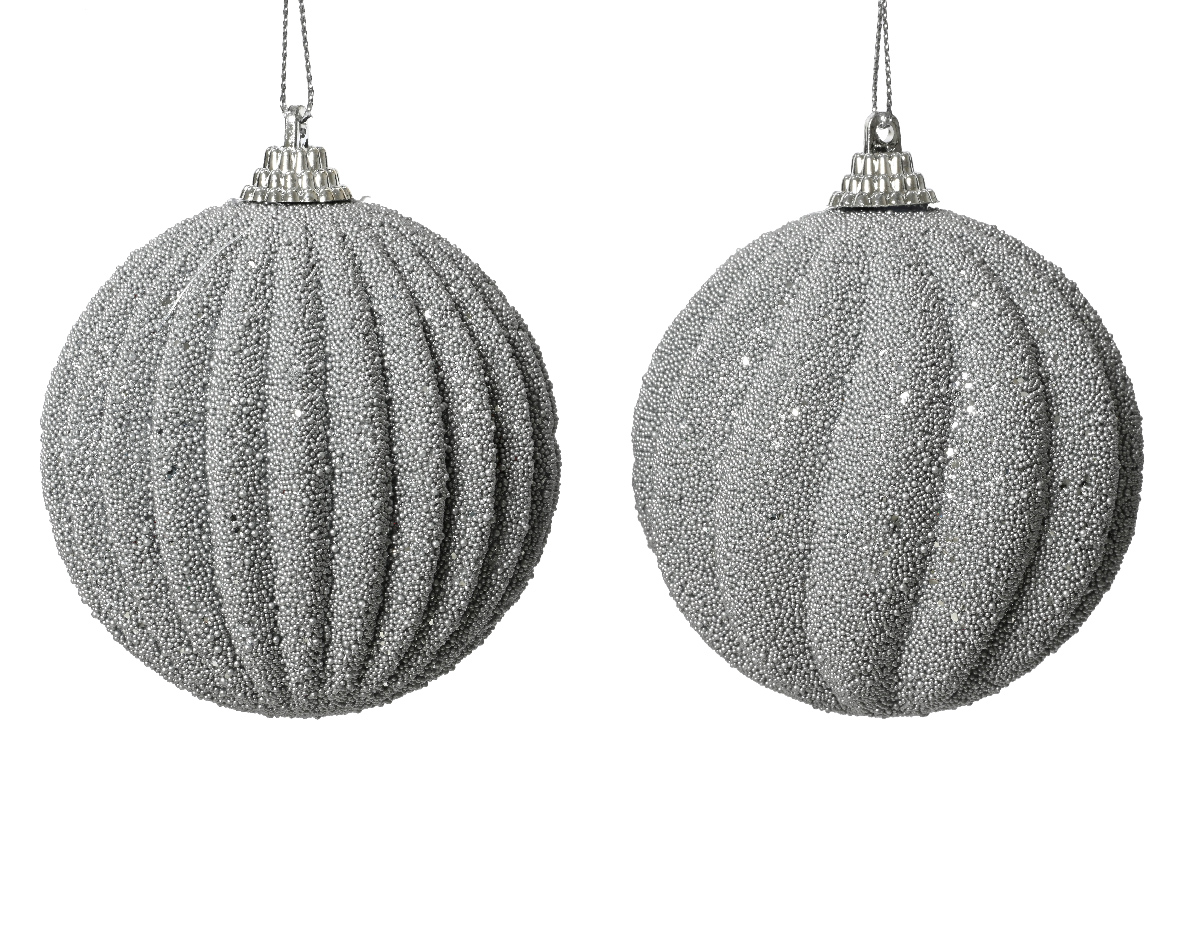 • Läbimõõt: 8cm. • Värvus: hõbe. • Valikus kaks erinevat mustrit: 1. Sirgete joontega jõulukuul. 2. Laiade spiraal joontega jõuluuul.