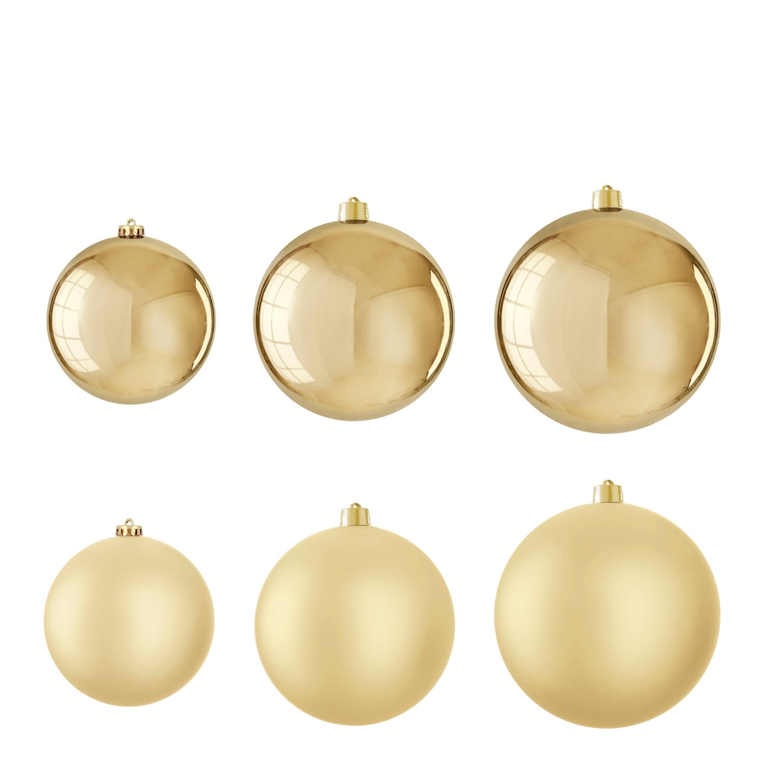 Läikiva pinnaga kuldne jõulukuul läbimõõduga 20 cm sobib hästi kuuse, pärja või muu dekoratsiooni täienduseks. Purunemiskindlast plastist valmistatud ehe on kerge ja vastupidav. Peegeljas viimistlus peegeldab valgust ning toob esile teiste kaunistuste tekstuurid ja toonid.