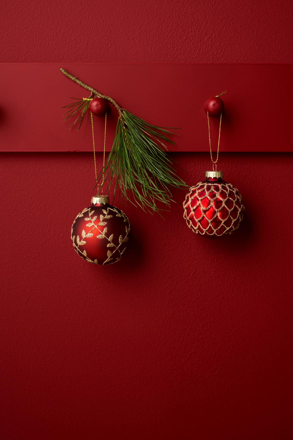 Punased jõulukuulid loovad jõulumeeleolu, olles kaunistatud kaunite kuldsete mustrite ja sädelusega. Need sobivad suurepäraselt nii kuusele, aknakaunistustesse, jõulukompositsioonidesse kui ka pidulikule lauale.