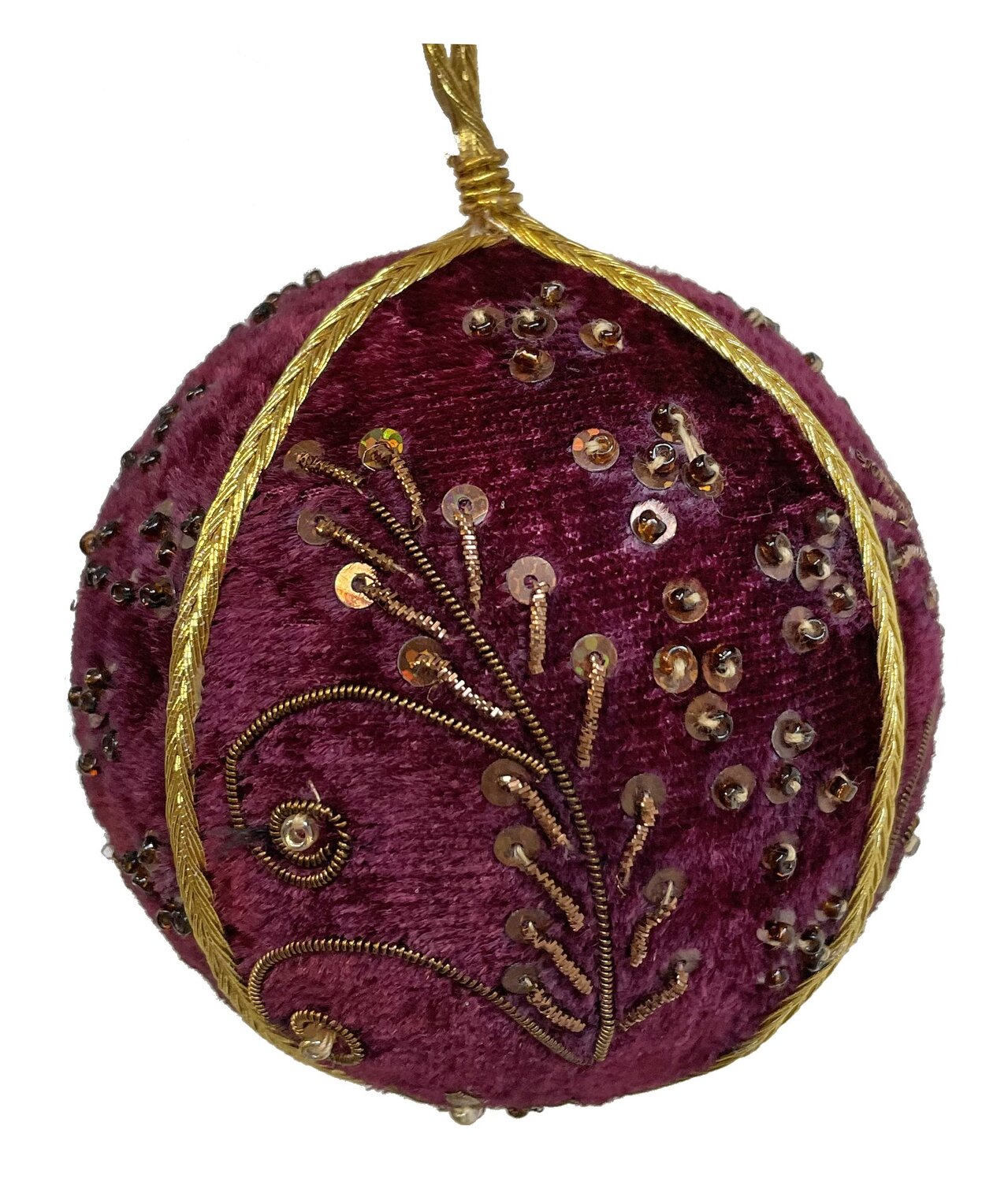 Sametiselt pehme jõulukuul, mida kaunistavad sädelevad litrid ja peened tikandid. Sügav burgundiapunane toon koos kuldse paelaga loob luksusliku ja sooja meeleolu, mis täiendab kaunistusi nii kuusel kui ka mujal interjööris.