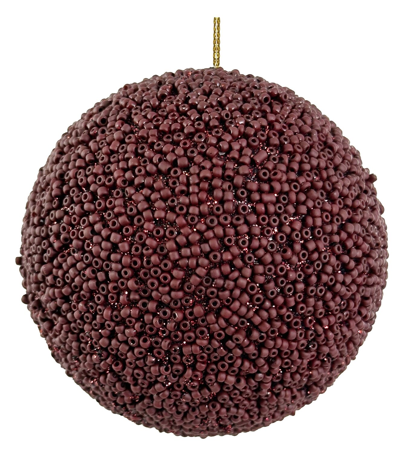 Elegantne jõulukuul, mille pind on kaetud mattide burgundiapunaste pärlitega. Peen ja ajatu viimistlus loob sametise ilme, mis sobib nii modernsesse kui ka klassikalisse jõulukaunistuste stiili. Ideaalne aktsent kuusele või dekoratiivsele kausile.