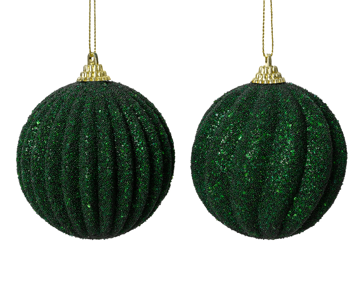 Jõulukuul sädelev soontega tumeroheline Ø8cm erinevad 1tk