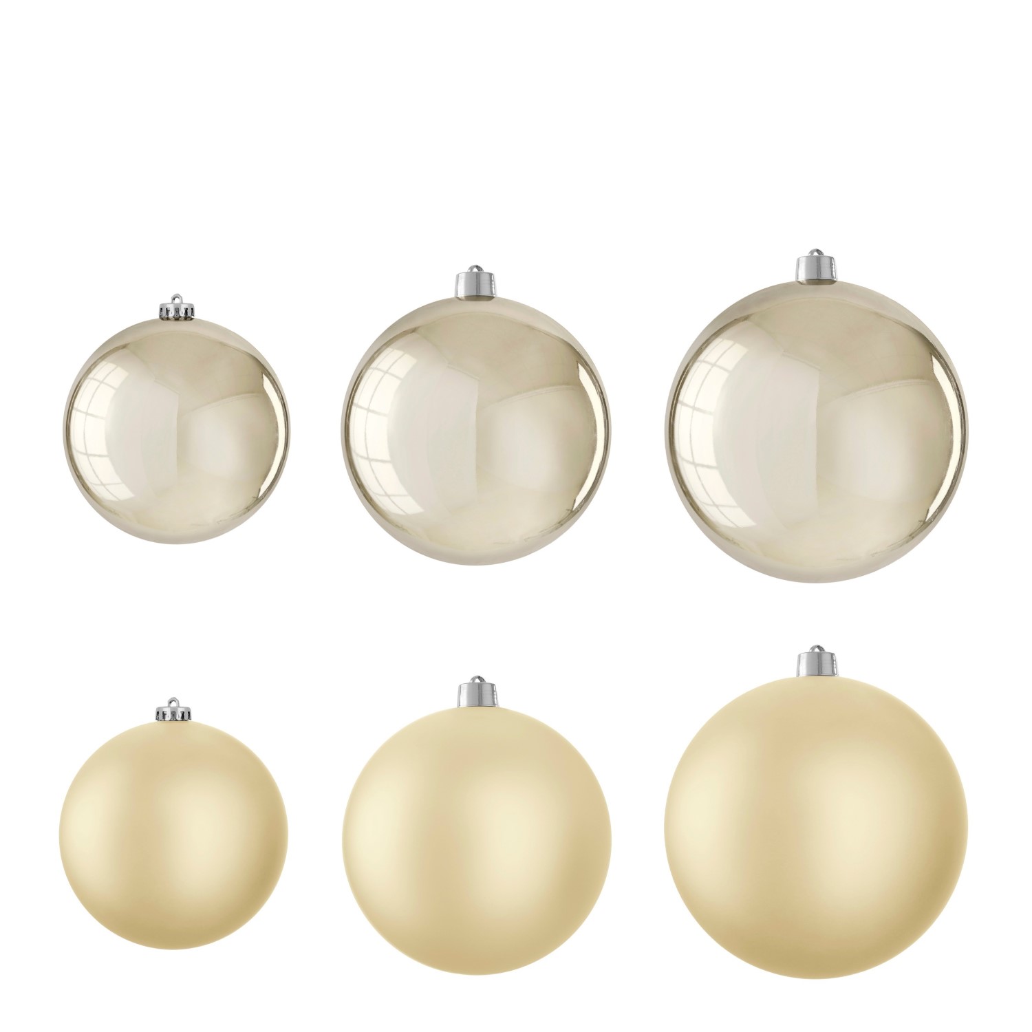 Läikiva pinnaga šampanjatooni jõulukuul läbimõõduga 15 cm lisab kaunistustele õrna sära ja helgust. Sile pind peegeldab valgust, sobides hästi heledamate või metalliktoonidega kombineerimiseks. Valmistatud purunemiskindlast plastist, on see kerge ja vastupidav valik erinevatesse dekoratsioonidesse.