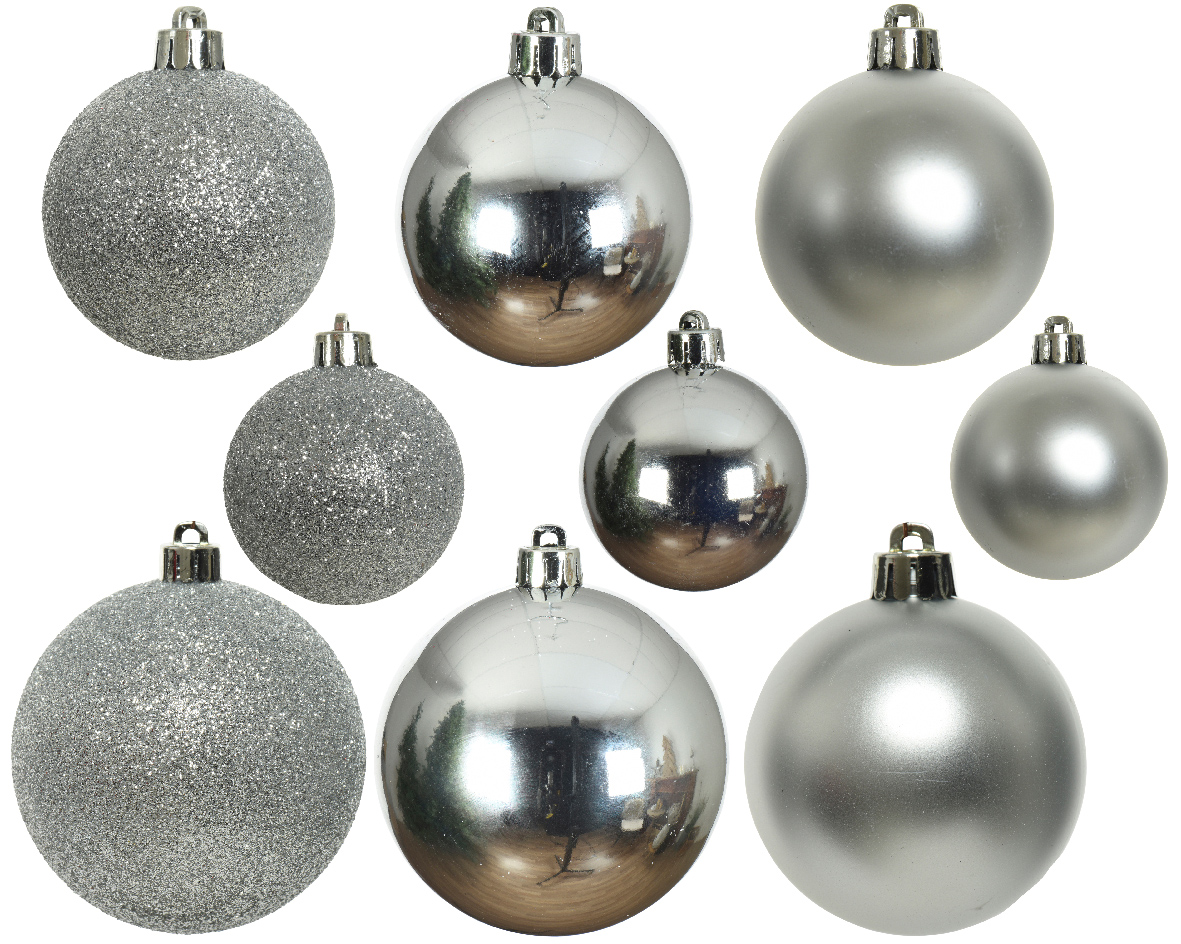 Jõulukuulid hõbe läikiv/matt/glitter komplekt 6cm 30tk/pk