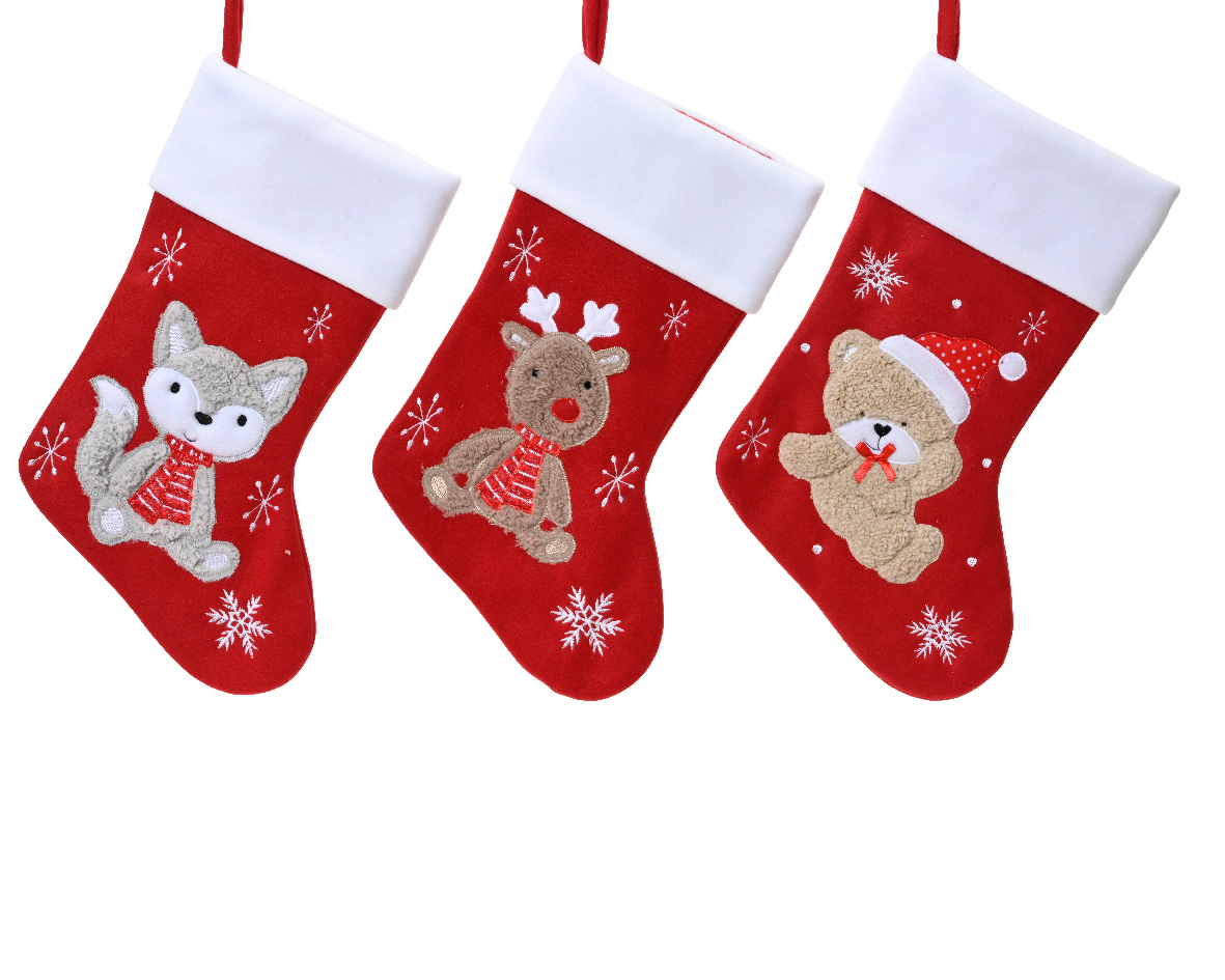 Materjal: polüester Pikkus: 0,5cm Laius: 25cm Kõrgus: 40cm Valikus kolme erineva loomaga jõulusokki: rebane, karu, hirv