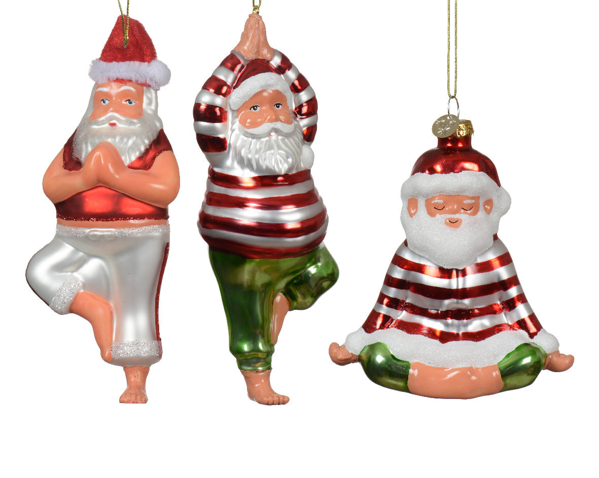 Kuuseehe jõuluvana joogatund. Kolm erinevat klaasfiguuri.