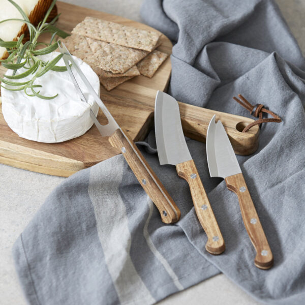 Nicolas Vahe juustunoad on valmistatud roostevabast terasest ja satiinviimistlusega, mis loob esmaklassilise välimuse. Akaatsiapuidust käepidemetega noad on viimistletud naturaalse ja sooja noodiga. Kolm nuga sobivad suurepäraselt teie lemmikjuustu lõikamiseks, kuna need on loodud lõikama nii kõvasid kui ka pehmeid juuste.
