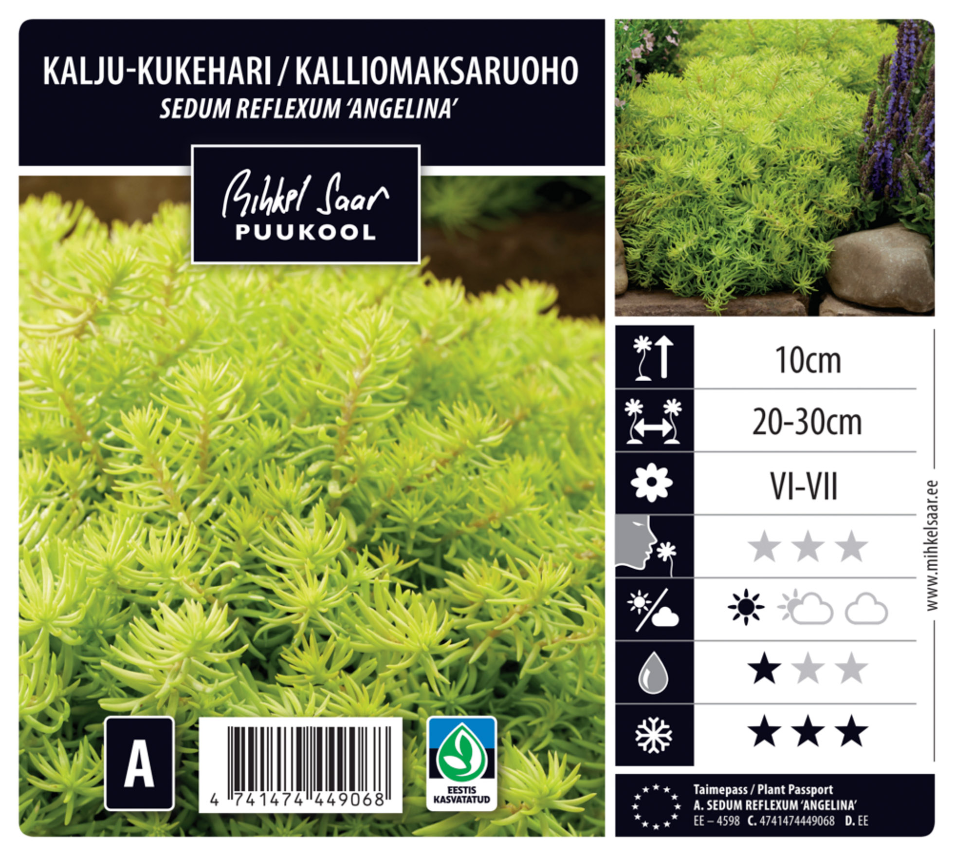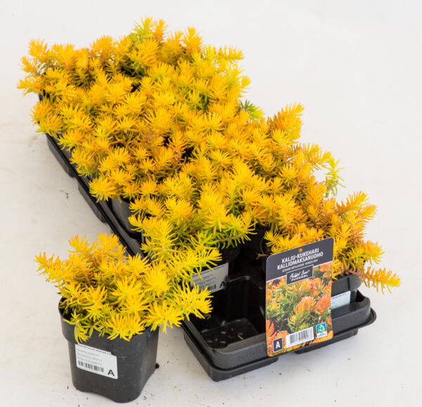 Kalju-kukehari ‘Angelina’ on madal ja tihe igihaljas püsik, mis toimib hästi pinnakatjana. Silma paistab ta erkkollaste kuni kuldsete lehtedega, mis sügisel muutuvad oranžikaks ja lisavad aeda sooje toone. Õied on tagasihoidlikud, kuid lehtede värvus teeb taimest tõelise pilgupüüdja. Sobib kiviktaimlasse, peenra äärde või anumasse päikeselisse kasvukohta.