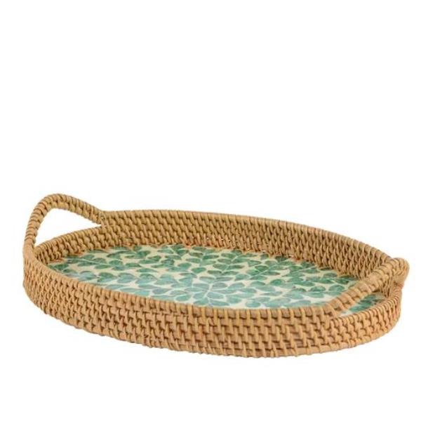 Stiilne ja praktiline kandik, mis sobib nii igapäevaseks kasutamiseks kui ka dekoratiivseks otstarbeks. Imiteeritud ratani tekstuur ja roheline lehemuster lisavad looduslikkust ning värskust. 36×26 cm suurusega ja 4 cm kõrgusega on see kandik suurepärane valik snäkkide, küünalde või pisiasjade jaoks. Pruun toon ja roheline muster muudavad selle universaalseks igas ruumis.