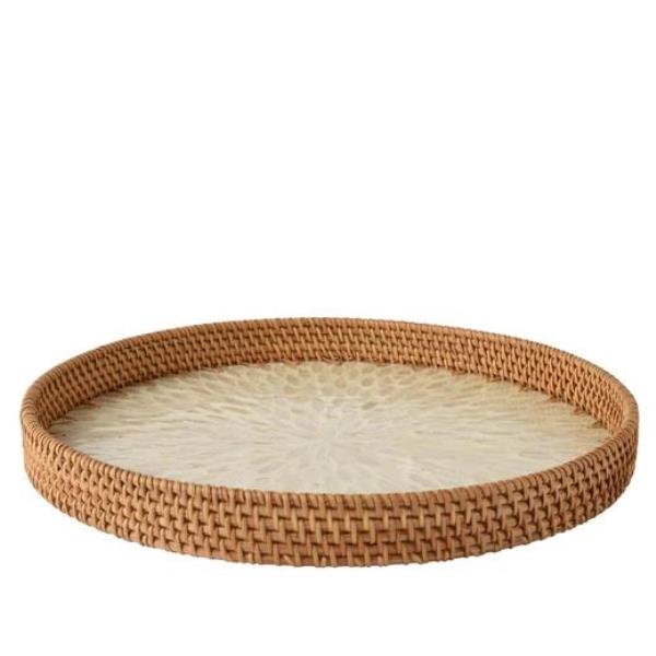 Stiilne ja praktiline kandik, mis sobib nii igapäevaseks kasutamiseks kui ka dekoratiivseks otstarbeks. Imiteeritud ratani tekstuur ja valge muster lisavad looduslikkust ning kaasaegset ilmet. 38 cm läbimõõduga ja 4 cm kõrgusega on see kandik suurepärane valik snäkkide, küünalde või pisiasjade jaoks.