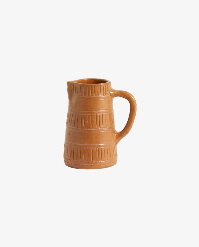 Kann Nordal Juniper on käsitsi valmistatud terrakotast, seega iga ese võib olla erineva värvi ja viimistlusega. Enne kasutamist on soovitatav kannu puhastada. Puhastage käsitsi sooja vee ja seebiga. Sobib nii kuumade kui külmade jookide jaoks.