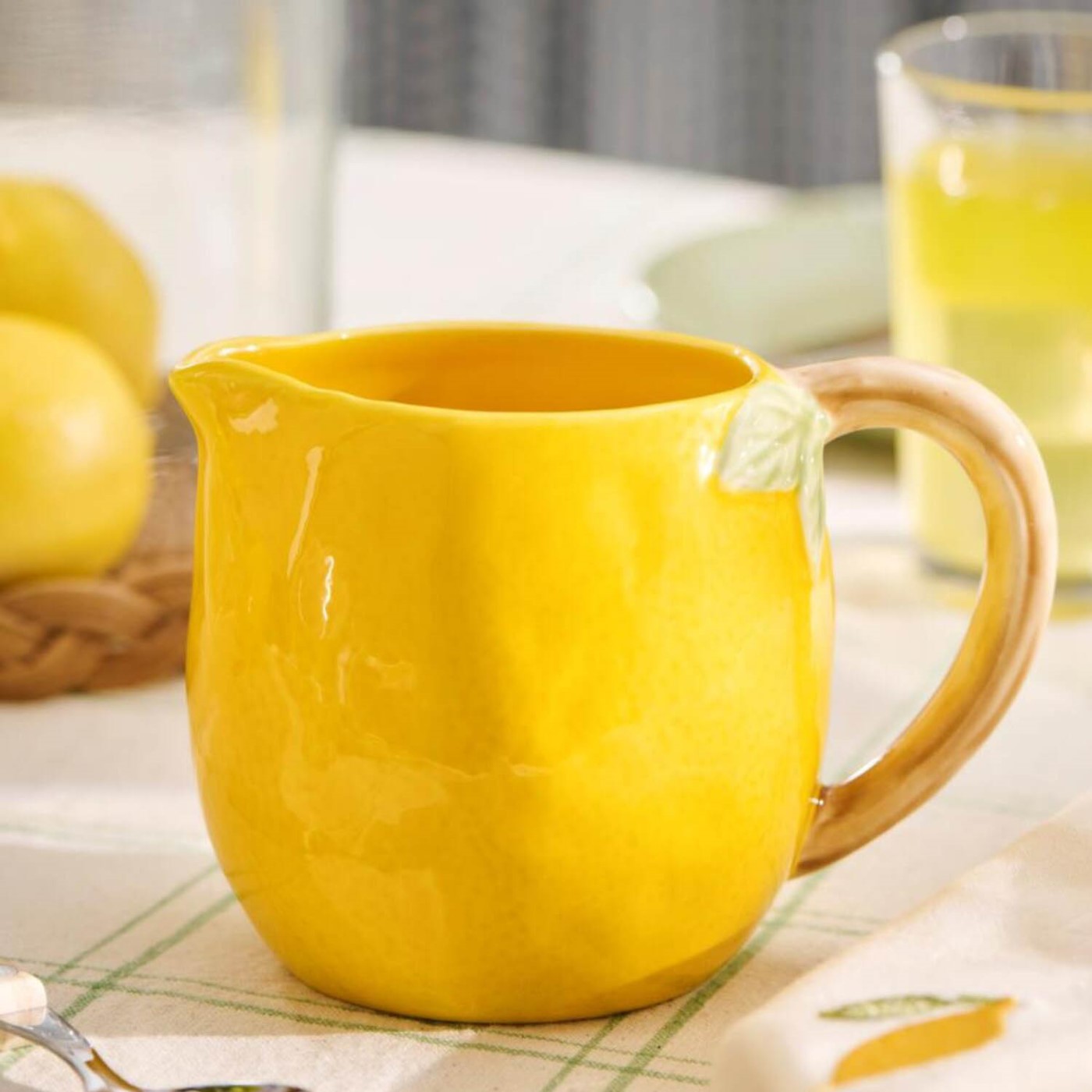 Võluv keraamiline kann sangaga, mis sobib nii jookide serveerimiseks kui ka dekoratiivseks vaasiks. Sidrunikujuline disain ja kollase-rohelise värvikombinatsioon toovad lauale värskust ja suvist meeleolu. Stiilne ja praktiline täiendus igasse kööki!