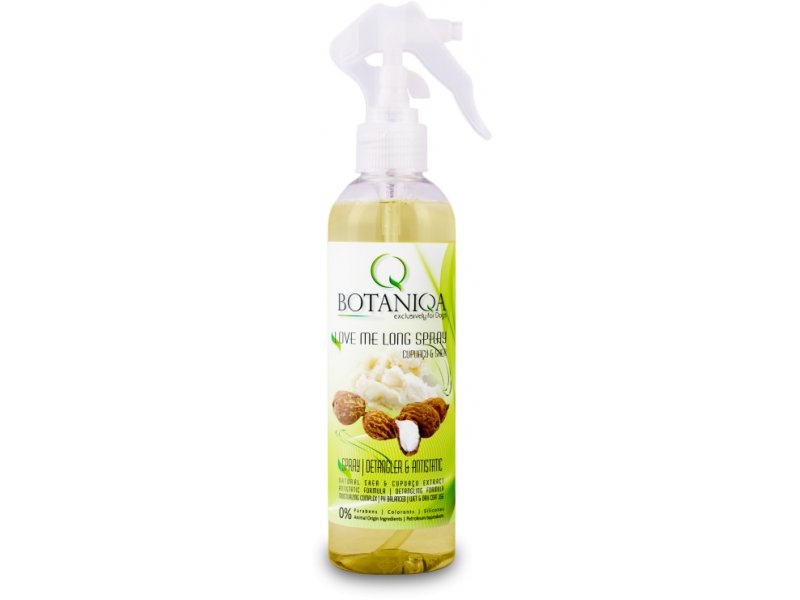 Karvahooldus sprei Botaniqa Love Me Long 250ml Love Me Long Spray on antistaatilise ja niisutava toimega nahale jäetav palsam.