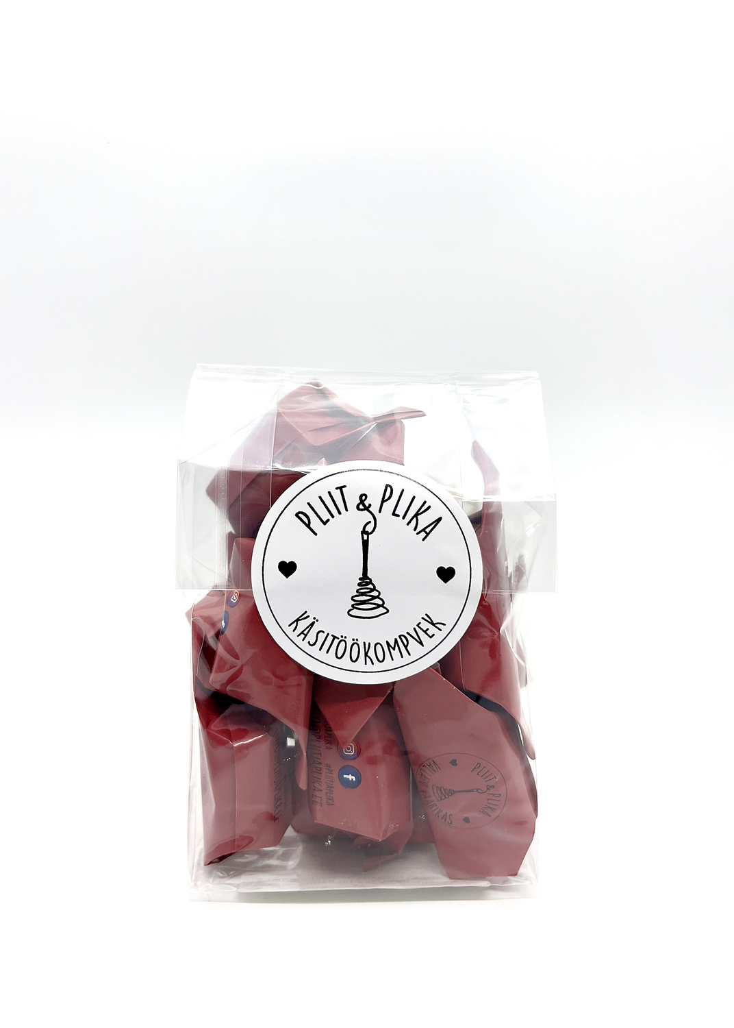 Pliit ja Plika käsitöökompvek “Vallatu vaarikas” on nostalgiline maius, mis toob meelde ehtsad klassikalised “lehmakommid”, kuid on saanud juurde mängulise vaarikanoodi. Marjane värskus ja karamelline pehmus loovad koos vallatu ning meeldejääva maitseelamuse. Iga komm on valmistatud naturaalsest toorainest ja käsitsi hoolikalt paberisse pakitud – ehe käsitöö ja tõeline magusanauding.