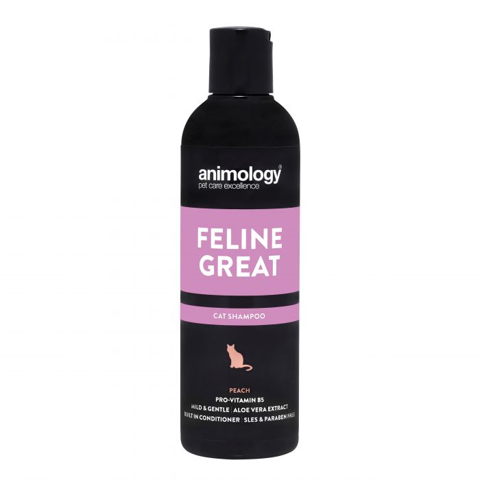 Animology Feline Great papaialõhnaline õrn šampoon, mis on loodud spetsiaalselt kassidele ning aitavad hoida kassi karva puhta, terve ja läikivana. See on rikastatud Aloe Veraga, mis pehmendab ja kaitseb nahka ning B5-vitamiiniga, mis toidab karvkatet.
