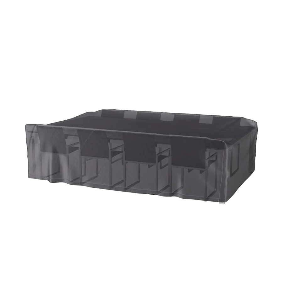 Kate on täiesti veekindel ja hingav kangas vähendab kondenseerumist, veeaur pääseb välja, takistades hallituse teket. Teie aiamööbel on täielikult kaitstud mustuse, tolmu ja vihma eest. Katte on kergesti kinnitatav kahelt poolt pingutusnööri ja stopperitega.