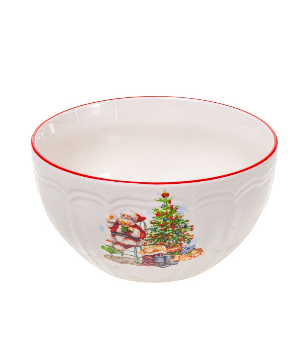 Kauss “Jõulud” 14 cm toob pühadelauale rõõmsa ja piduliku jõuluteema ning sobib hästi nii serveerimiseks kui ka dekoratiivseks kasutamiseks. Kaussi kaunistab detailne kujutis jõuluvanast ja ehitud kuusest, mis loob hubase pühadetunde. Punane äär lisab klassikalise jõululiku aktsendi ning mahutavus 610 ml teeb kausi praktiliseks igapäevaseks kasutamiseks – maiustele, salatitele või hommikusöögile. Kauss on toidukindel ning kõlblik nii mikrolaineahjus kui ka nõudepesumasinas.
