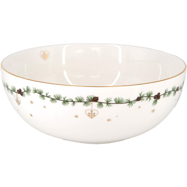 Julehjerte portselankauss on kaunis pühadeaegne serveerimisnõu, mis sobib hästi salatite, maiuste või teiste roogade pakkumiseks. Valgest portselanist kaussi kaunistab klassikaline jõulumotiiv okste, käbide ja südameornamentidega, mis loob piduliku ja hubase ilme.