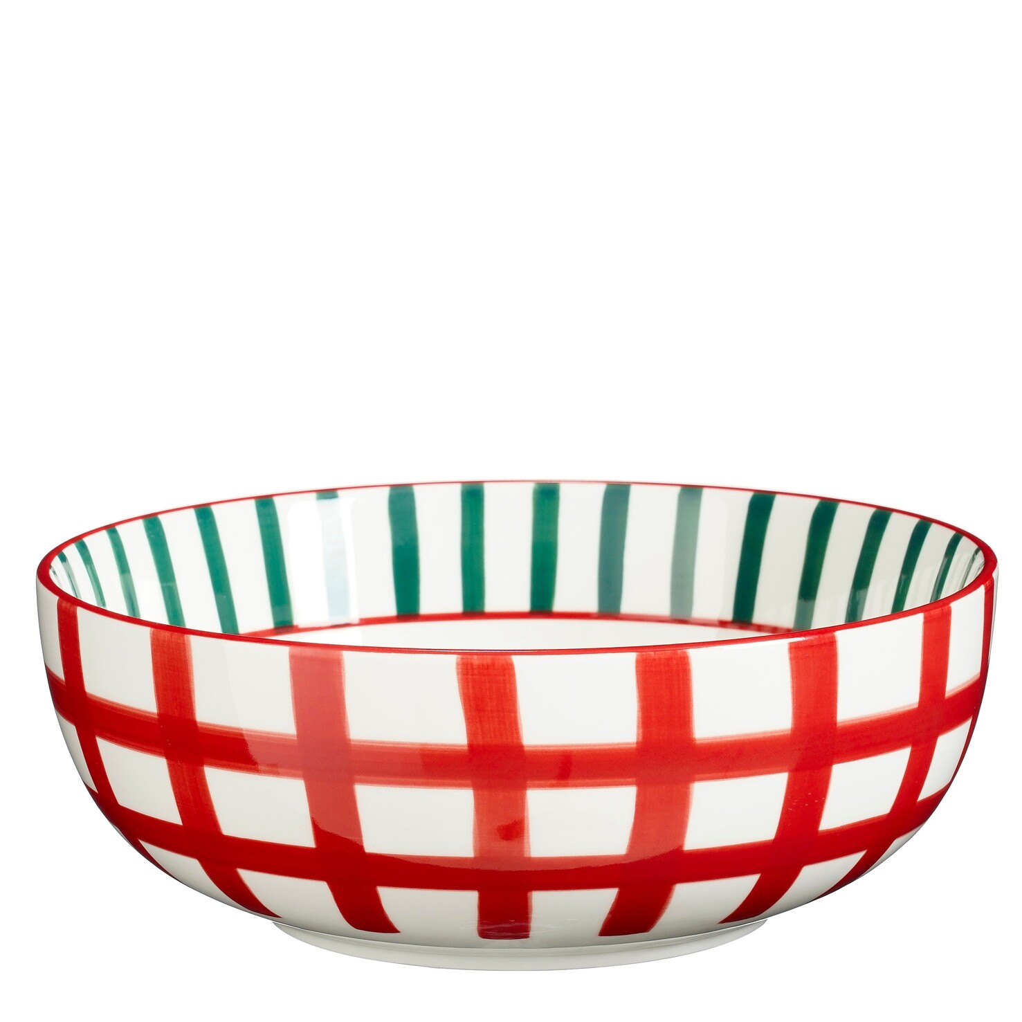 Stiilne ja rõõmsameelne kauss, mille välimust ilmestab käsitsi maalitud ruuduline muster punases ja rohelises toonis. Klassikaline värvikombinatsioon sobib suurepäraselt jõululauda või talviseks serveerimiseks. Ideaalne salatite, puuviljade või küpsetiste esitlemiseks.