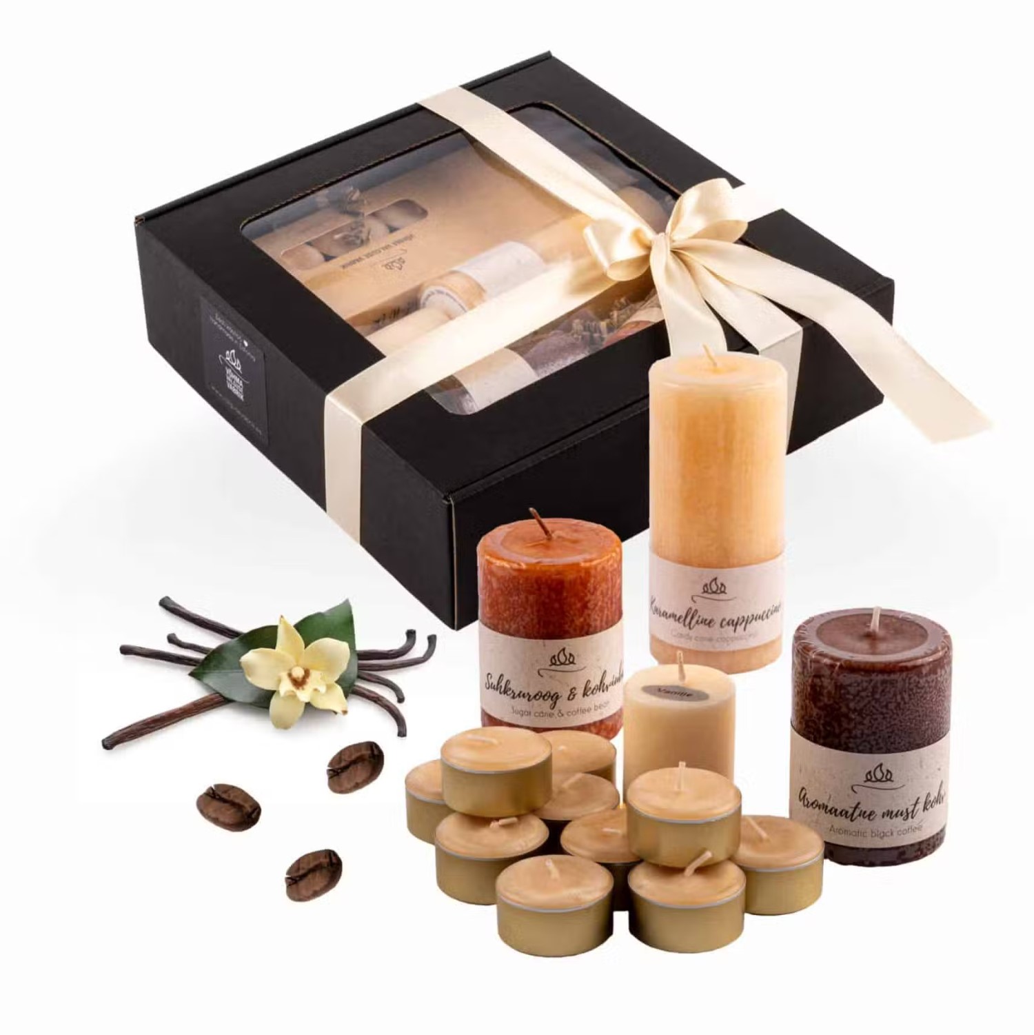 Kinkekomplekt Kohvisõbrale on täiuslik kingitus kõigile, kes hindavad kohvi aroome ja hubast meeleolu. Komplekti kuuluvad käsitööna valminud aroomiküünlad, mis loovad mõnusa atmosfääri ja toovad koju kohvikohviku hõngu.