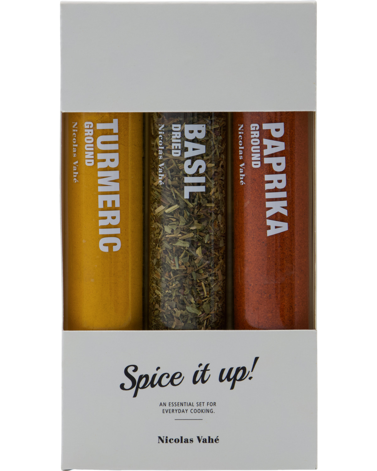Nicolas Vahé maitseainete komplekt basiilik, kurkum ja paprika-tšilli (11g) pakub lihtsat võimalust tuua igapäevastesse roogadesse värvi ja maitset. Värske basiilik sobib hästi salatitesse ja pastadesse, paprika-tšilli annab hautistele ja kastmetele maheda särtsu, ning kurkum lisab röstitud köögiviljadele kuldset tooni ja soojust. Täiuslik komplekt loovaks ja mänguliseks kokkamiseks.