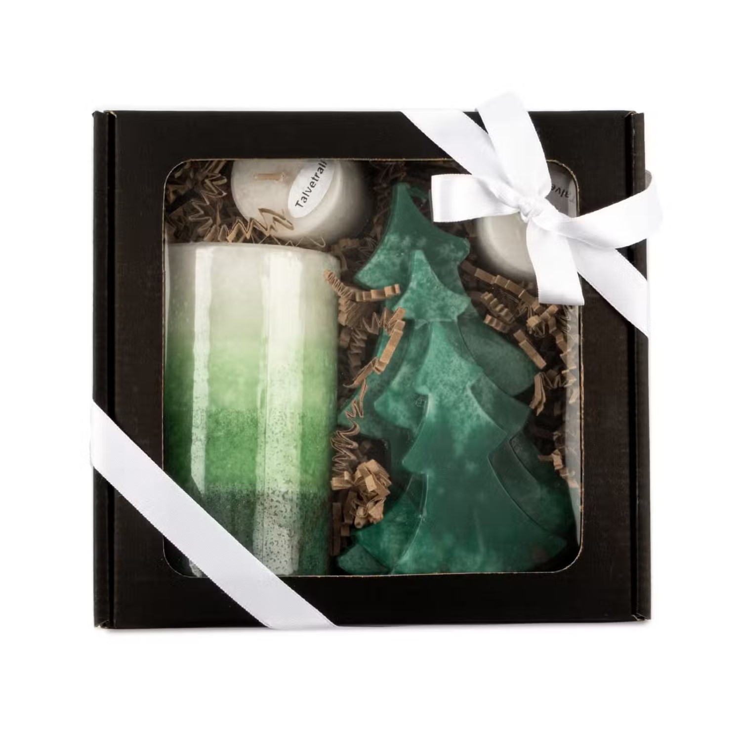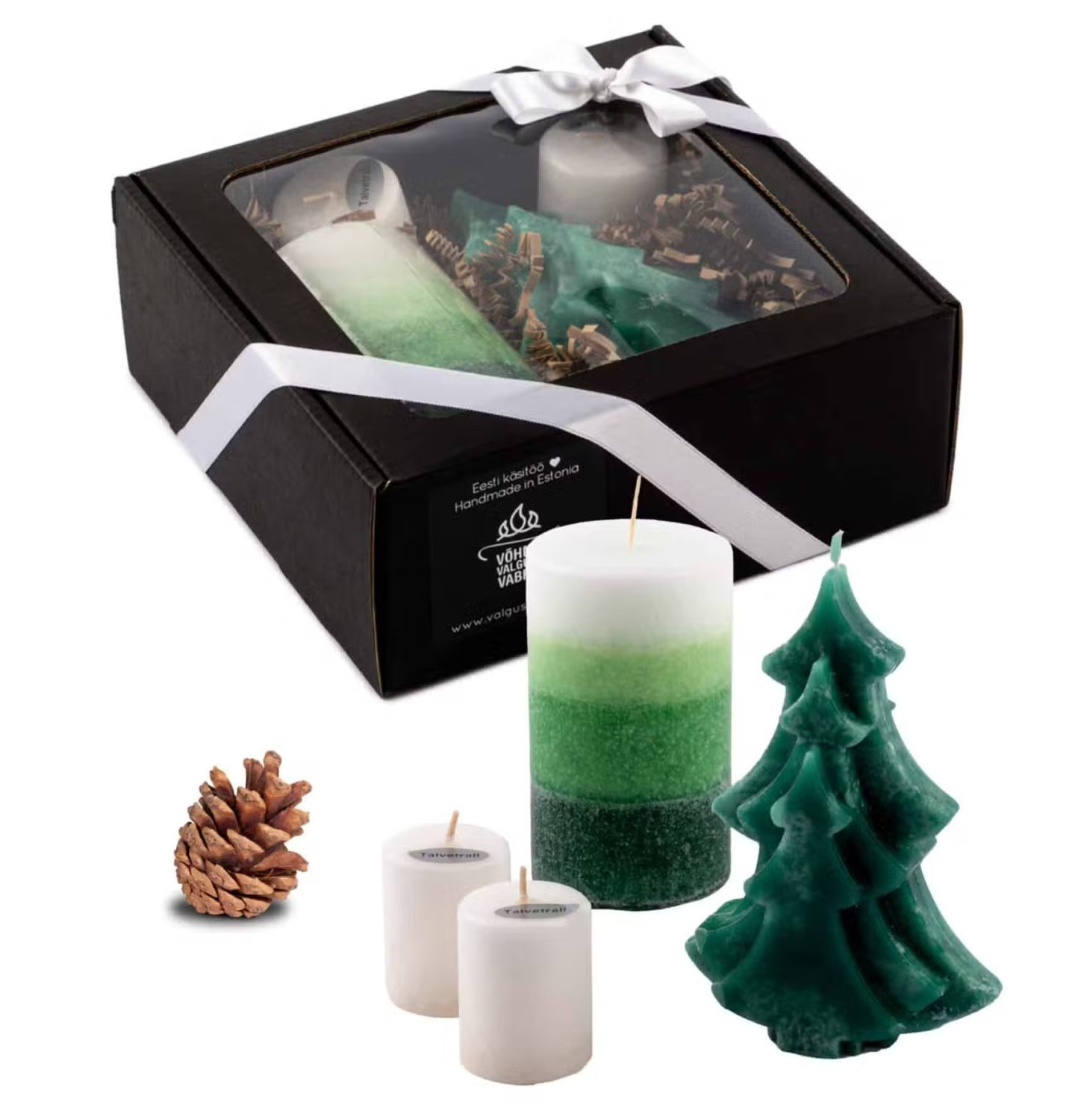 Kinkekomplekt Talvine Mets on looduseinspiratsiooniga küünlakomplekt, mis pakub meeleolukat elamust neile, kes hindavad metsarohelist värvigammat ja värskeid kuuselõhnalisi aroome. Küünaldest õhkub talvist metsaõhku, mida täiendab armas kuusekujuline lõhnatu küünal – ideaalne kingitus loodusesõbrale.