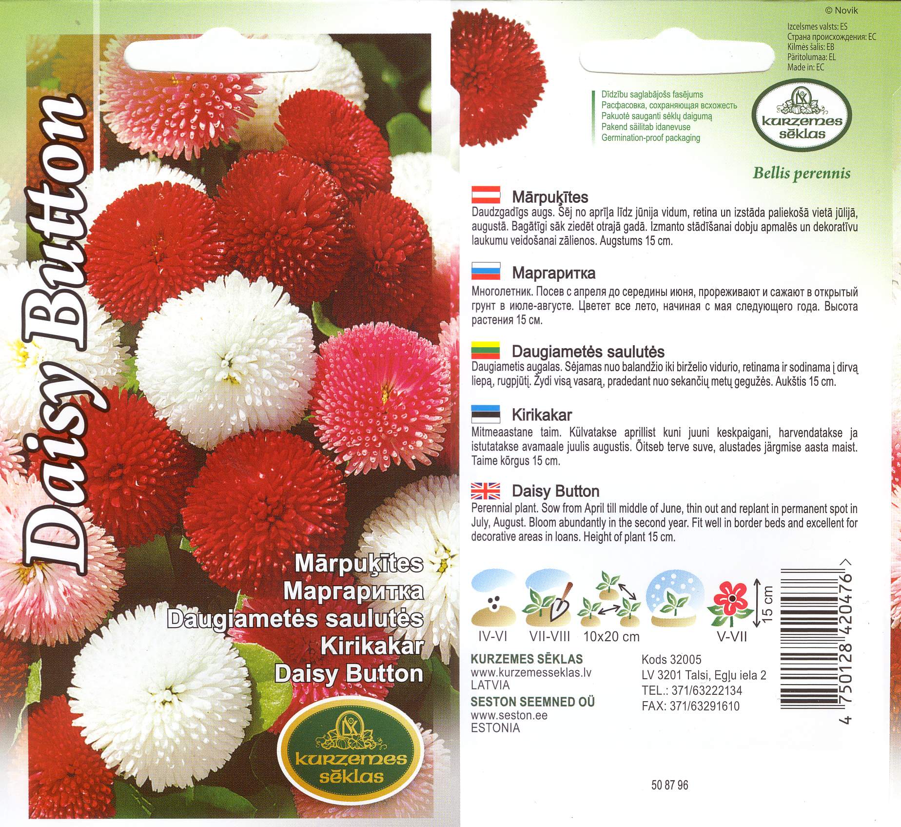 Bellis perennis Tootja: Kurzemes seklas Tootekood: K063601