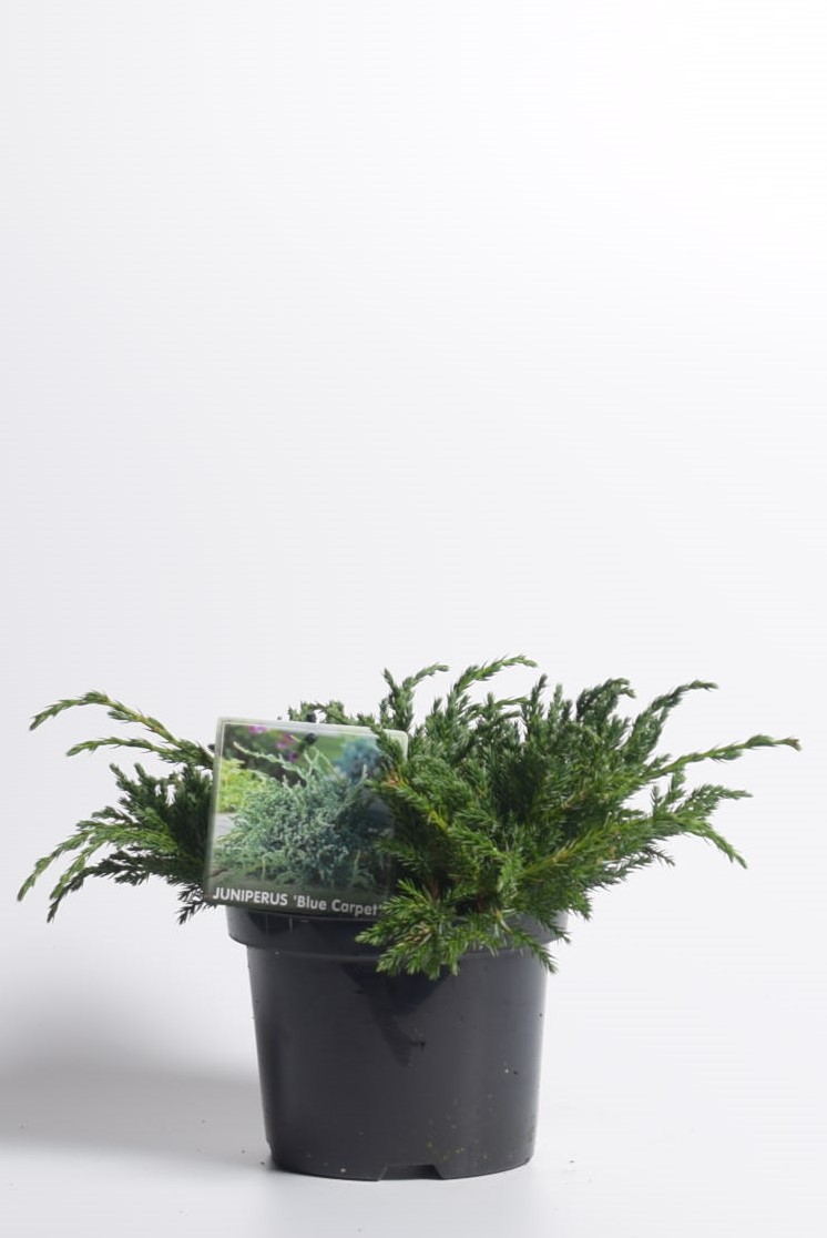 Kirju kadakas ‘Blue Carpet’ on madalakasvuline ja laiuva kasvukujuga sort, moodustades tiheda ja ühtlase hõbesinise pinnakatte. Okkad on tugevad, lühikesed ja teravad. Kasvab väga kiiresti ja katab hästi pinda, mistõttu sobib suurepäraselt kiviktaimlatesse, peenarde ääristuseks ja nõlvadele pinnakatte taimena.