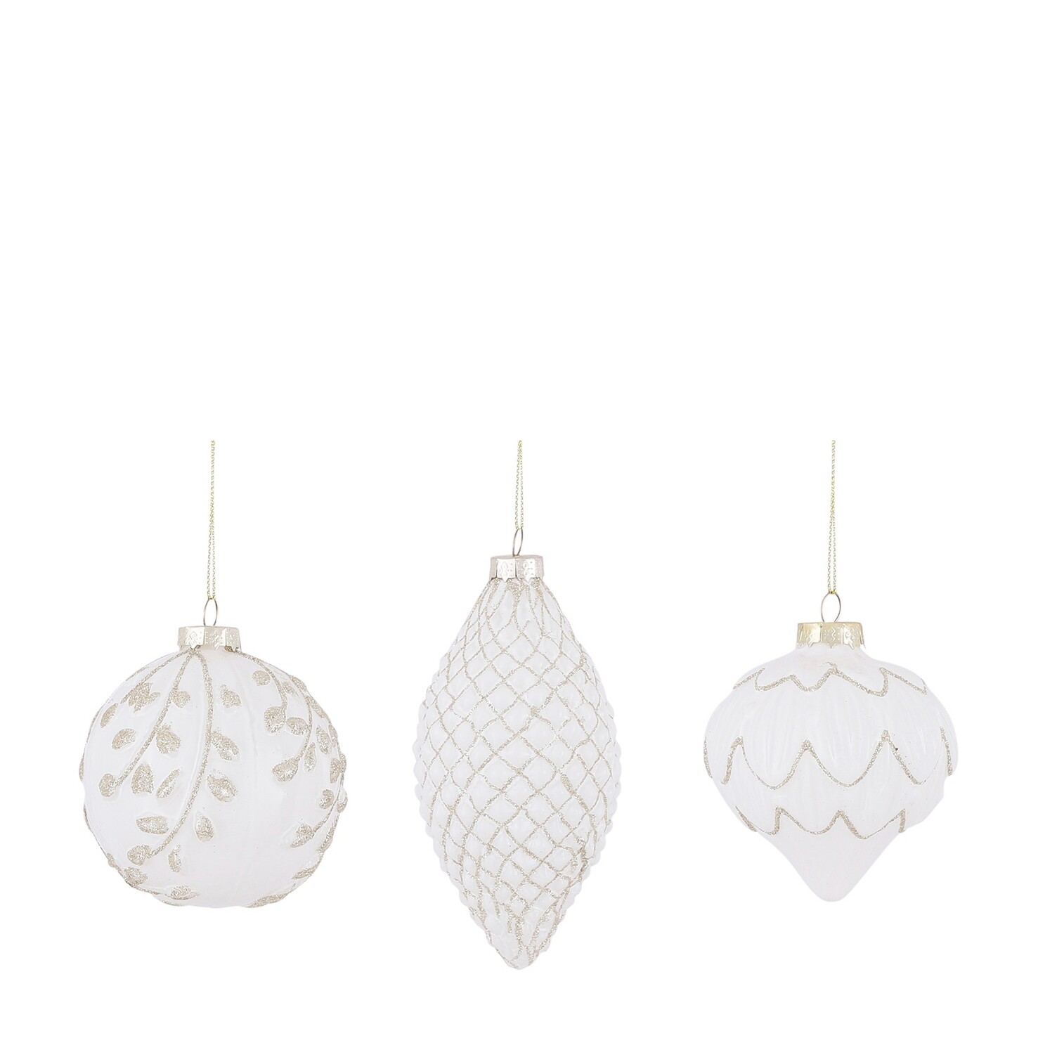 Helge klaaskuul, mis lisab kuusele kargust ja elegantsi. Jäiselt valge pind on kaunistatud peente kuldsete mustritega, mis loovad pehme ja särava tulemuse. Erinevad kujundused annavad kaunistamisel mitmekülgsust ja harmooniat.