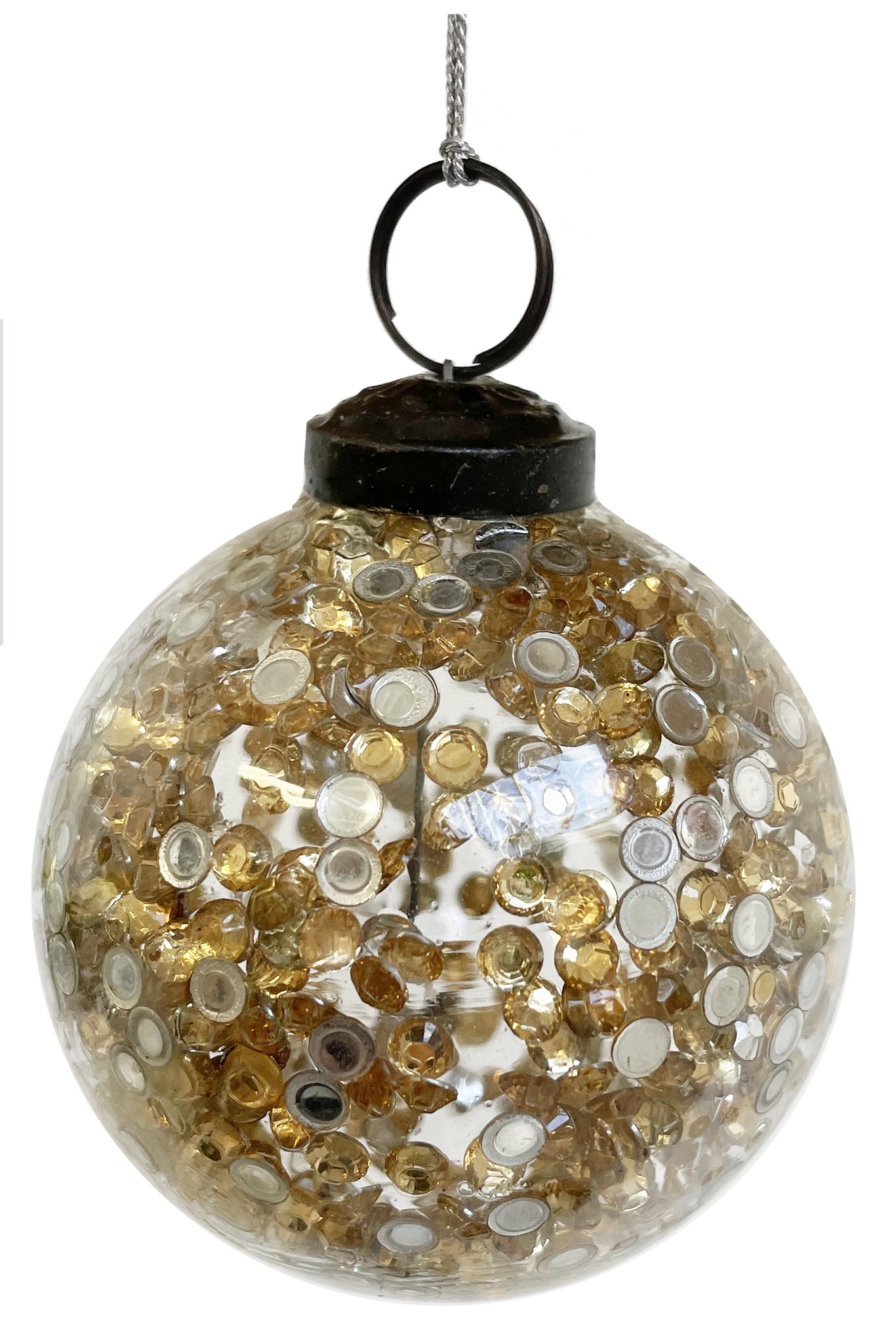 Klaaskuul kuldsed helmed sees 7cm läbipaistev