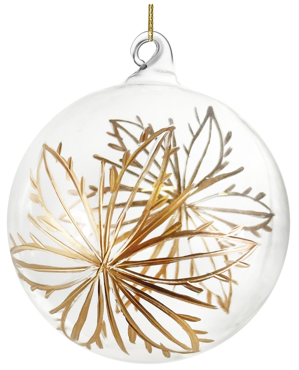 Õhuline klaaskuul, mida kaunistavad elegantselt joonistatud kuldsed lumehelbed. Läbipaistev klaas loob ehtesse kerguse ning laseb valgusel kaunilt läbi kumada, muutes selle sobivaks nii jõulukuusele kui ka akna- või lauakaunistuseks.