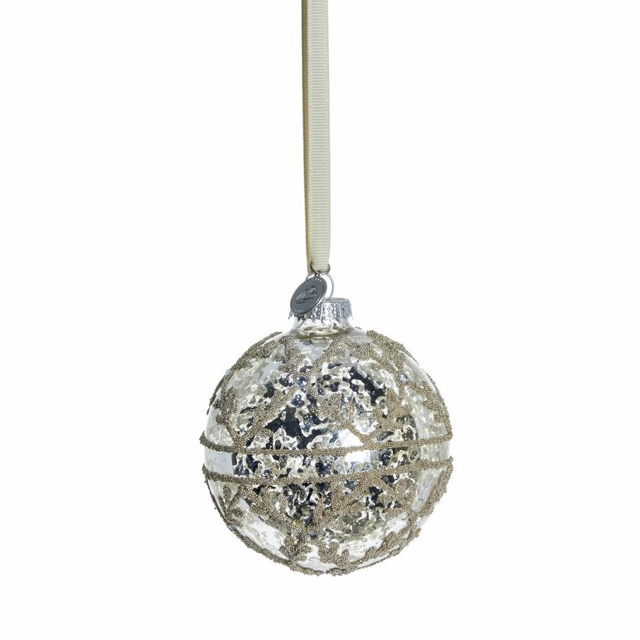 Klaaskuul Perline on efektne ja pidulik jõuluehe, mis toob interjööri rikkalikkust ja ajatut elegantsi. Ehe on valmistatud klaasist ja viimistletud läikiva antiikhõbedase elavhõbeklaasi efektiga, mida täiendavad peened helmestatud mustrid. Suurem mõõt muudab selle kuuli tõeliseks pilgupüüdjaks nii kuusel kui ka lauadekoratsioonis.