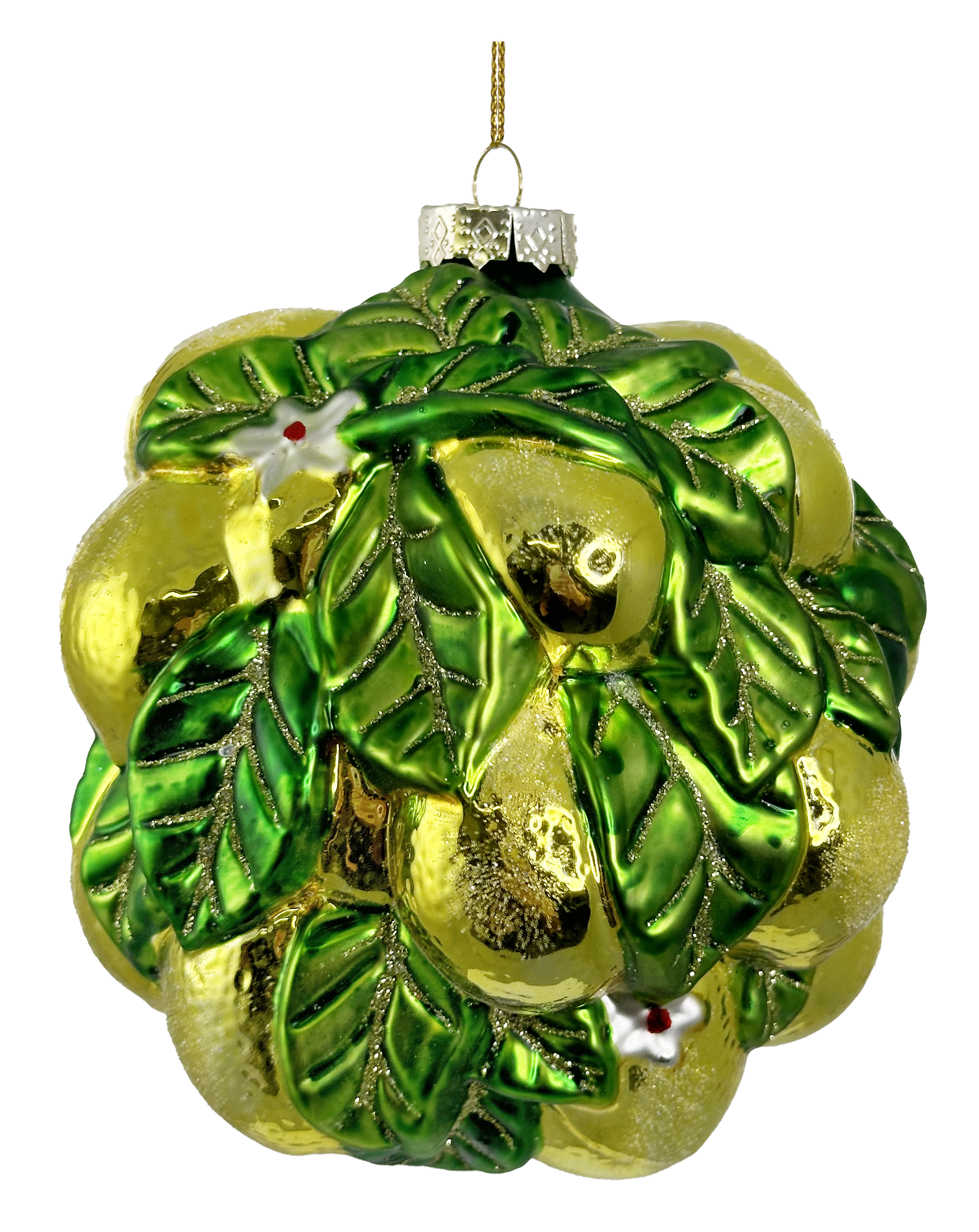 Shishi roheline klaaskuul Sidrunid läbimõõduga 13cm. Shishi jõuluehete valik pakub nii traditsioonilisi kui ka modernseid jõulukaunistusi, mis sobivad erinevate disaini eelistustega. Alati leidub midagi nii klassikalise kui ka trendika stiili austajatele.