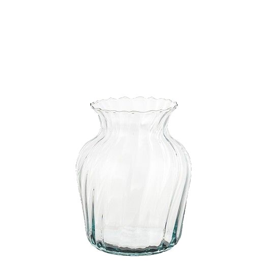 Läbipaistev klaasvaas Minou on kergelt kumerate külgede ja sissepoole aheneva kaelaga. Vertikaalne reljeef ja õrnalt laineline serv annavad vormile pehmuse ning lisavad visuaalset rütmi.