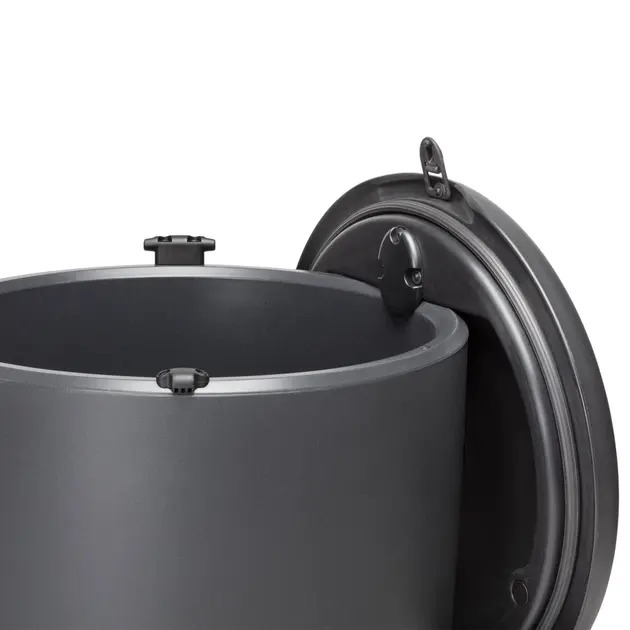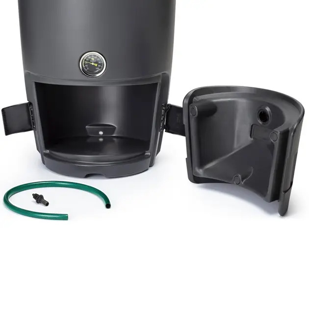 Uuendatud disainiga kompostril on tugev lukustusega kaas, tugihing lihtsaks avamiseks ning ventiilidega varustatud kaas ja tühjendusluuk. Kaldpõhi suunab liigse vedeliku filtriga väljavoolu kaudu eemale, aidates hoida kompostimistingimused optimaalsed.