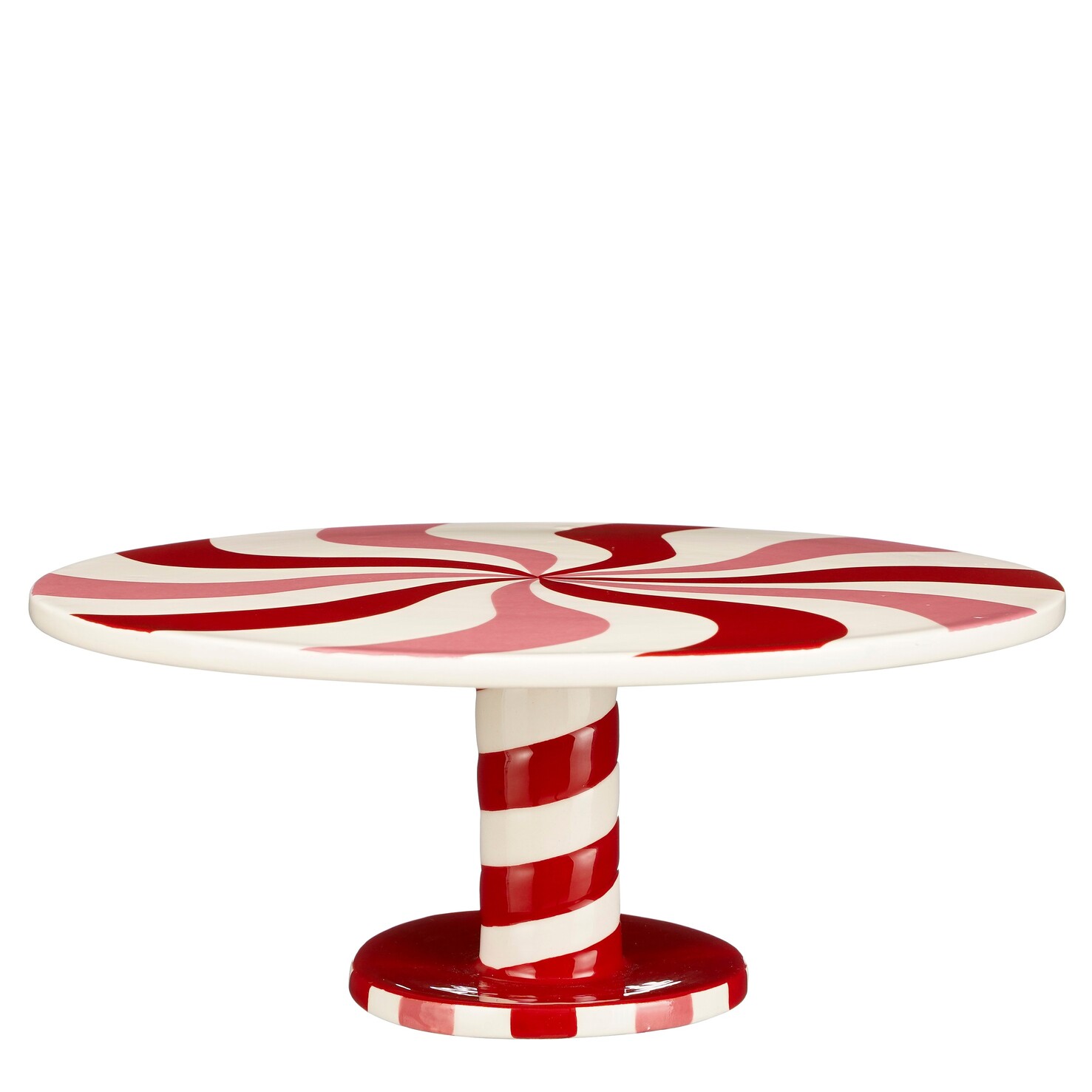 Lõbus ja pilkupüüdev koogialus, mille disain on inspireeritud punavalgest piparmündikommist. Spiraalse mustriga pind ja triibuline jalg loovad tõelise maiustuste maailma tunde. Ideaalne kookide, tortide ja maiustuste serveerimiseks jõulu- või peolaual.