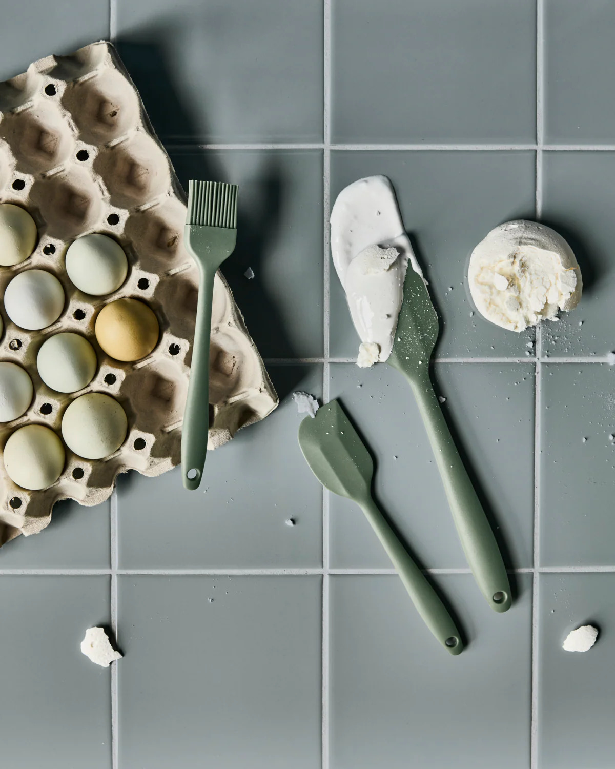 Nicolas Vahé Bake silikoonist köögitarvikud ühendavad funktsionaalsuse ja põhjamaise disaini. Komplekti kuuluvad määrepintsel ja kaks eri suuruses taignakaabitsat, mis muudavad küpsetamise mugavaks ja stiilseks. Värske roheline toon lisab kööki elavust, samas kui praktiline kuumakindel materjal tagab töökindluse ja lihtsa hoolduse.